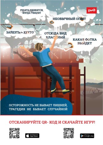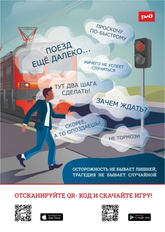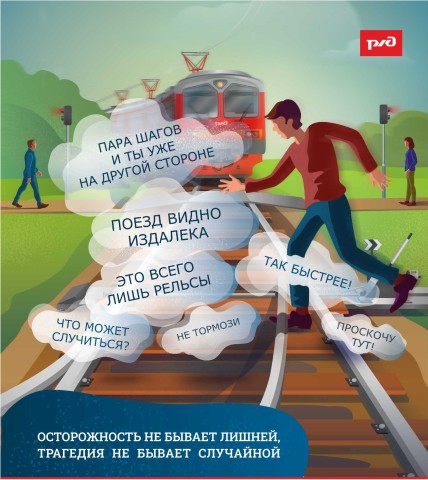 Железная дорога – зона повышенной опасности. ОАО «РЖД» призывает вас быть бдительными, находясь вблизи объектов железнодорожного транспорта, беречь свою жизнь и предупреждать об угрозах окружающих.